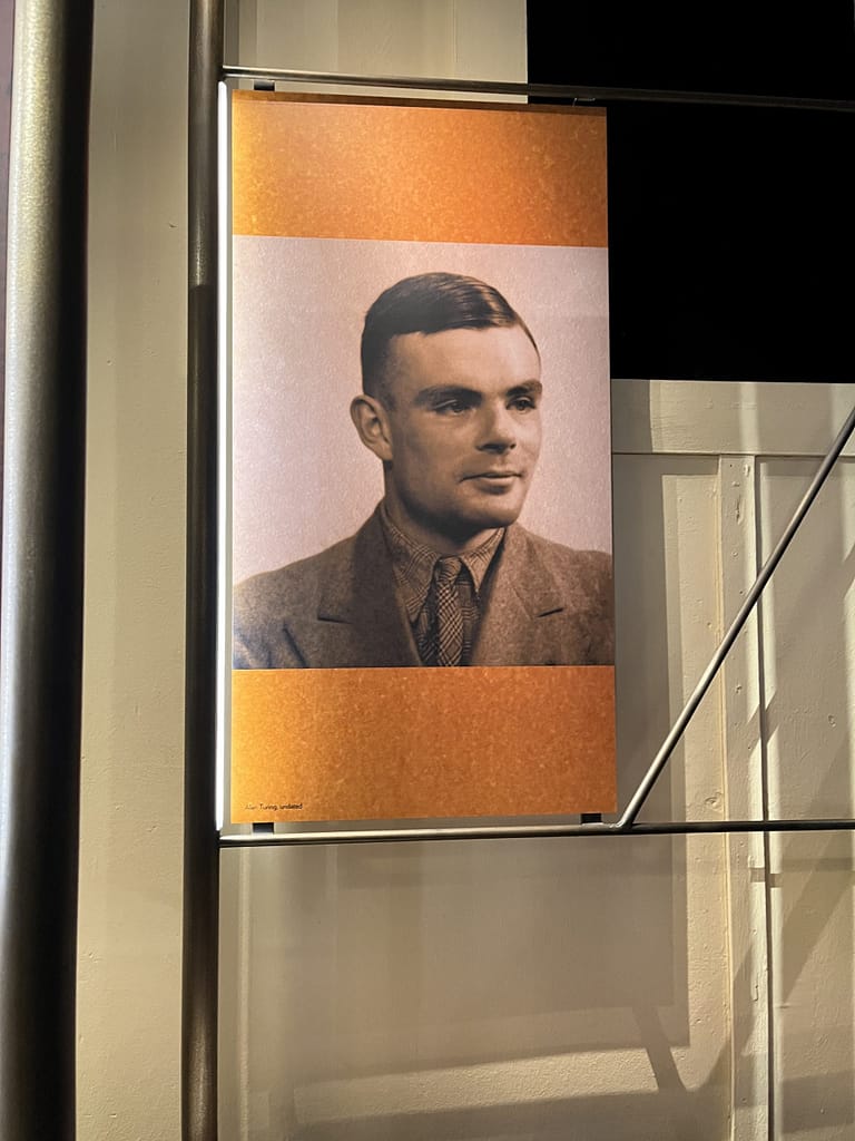 I took the photo of this image, which is on display at the Bletchley Park Museum, about 50 miles north of London, England. View the UK 2023 gallery for more Bletchley.