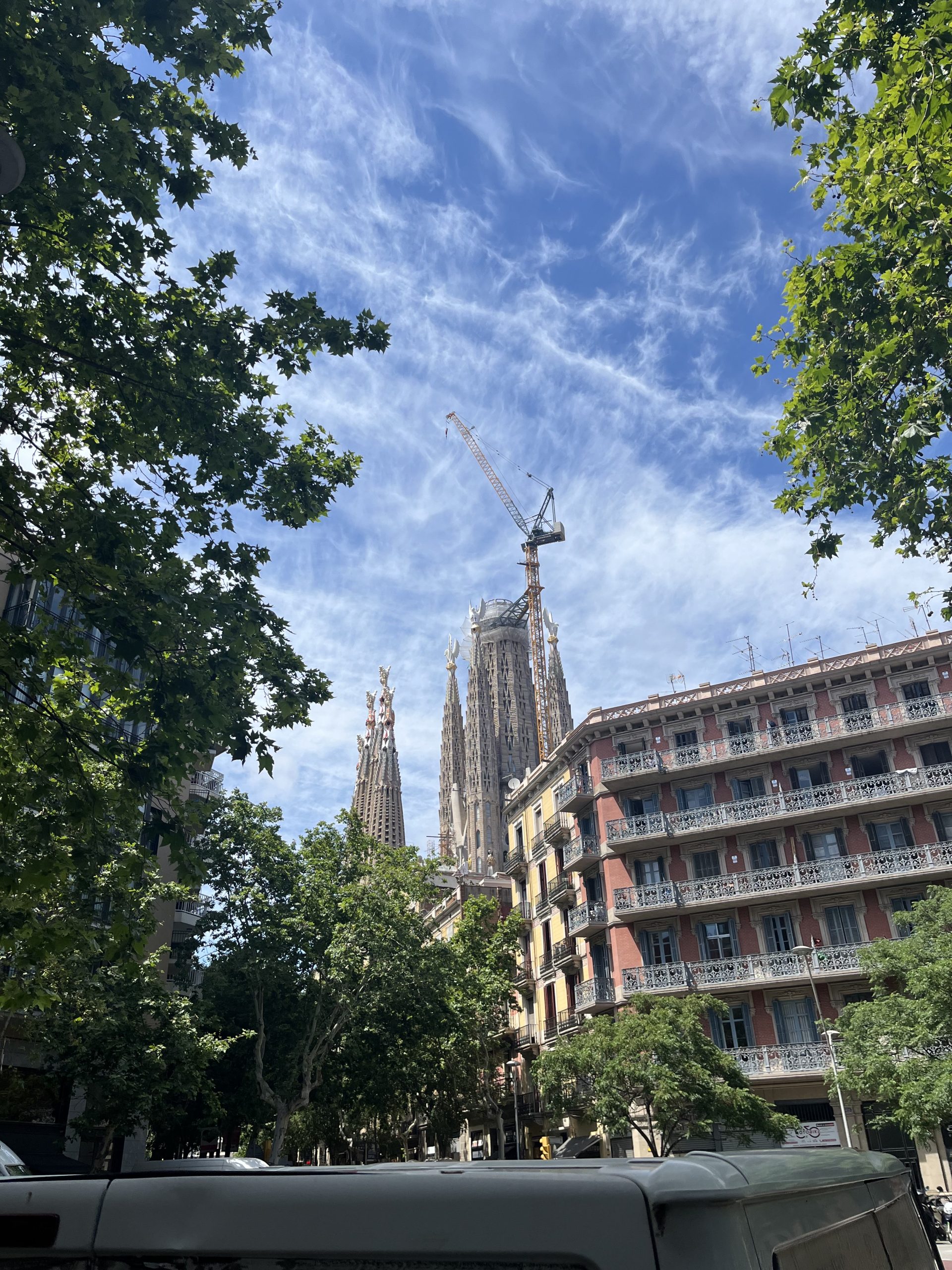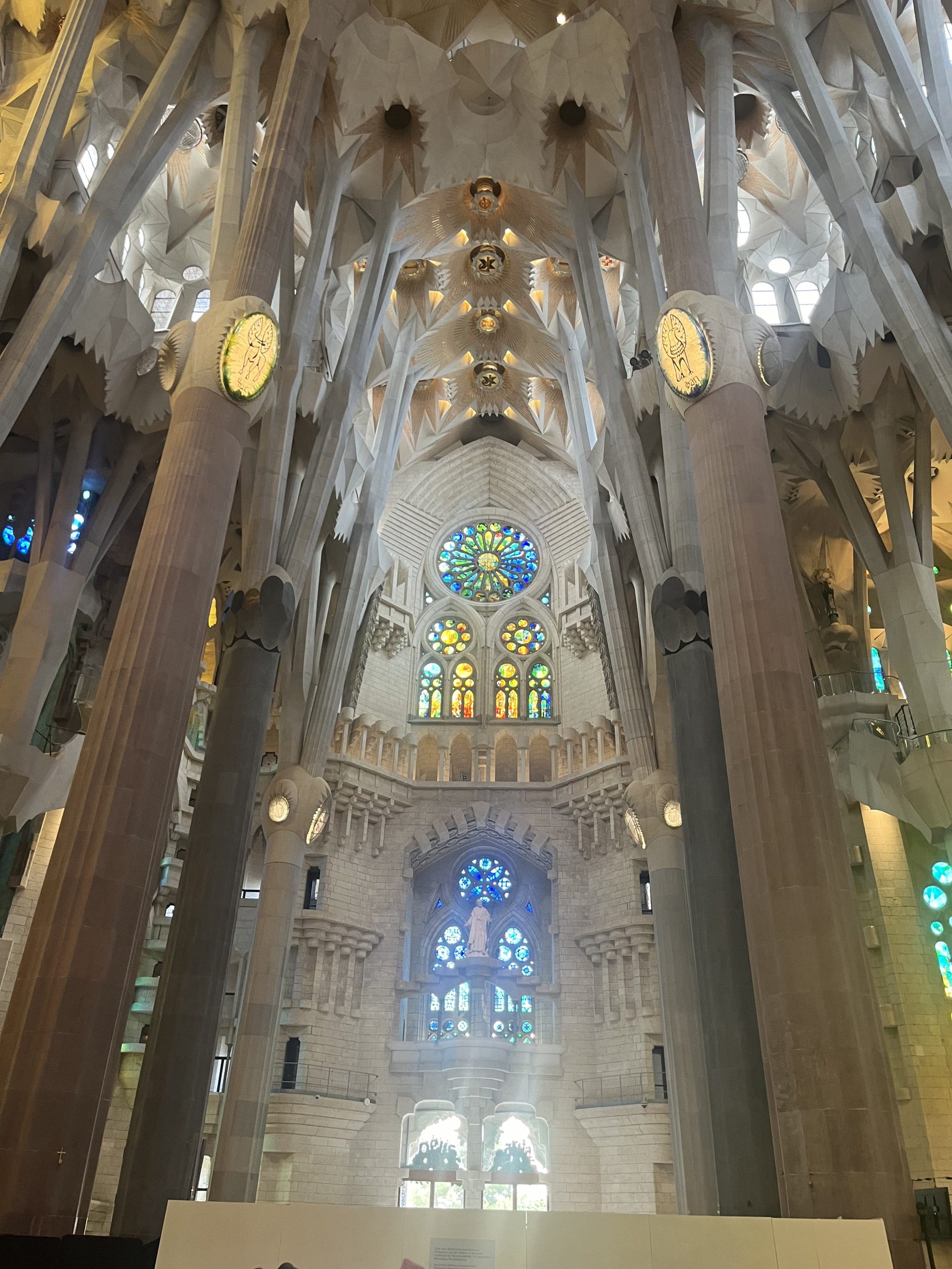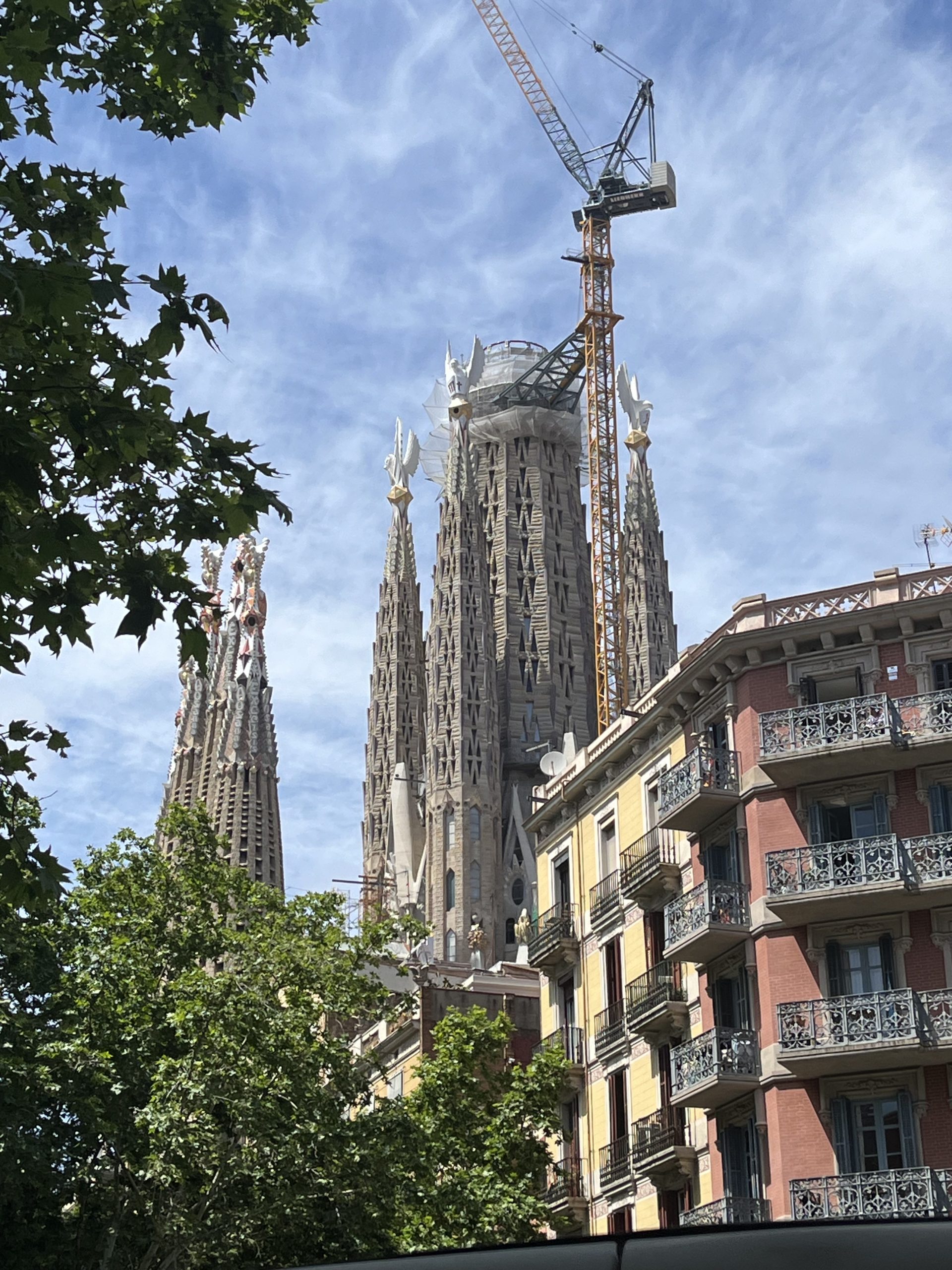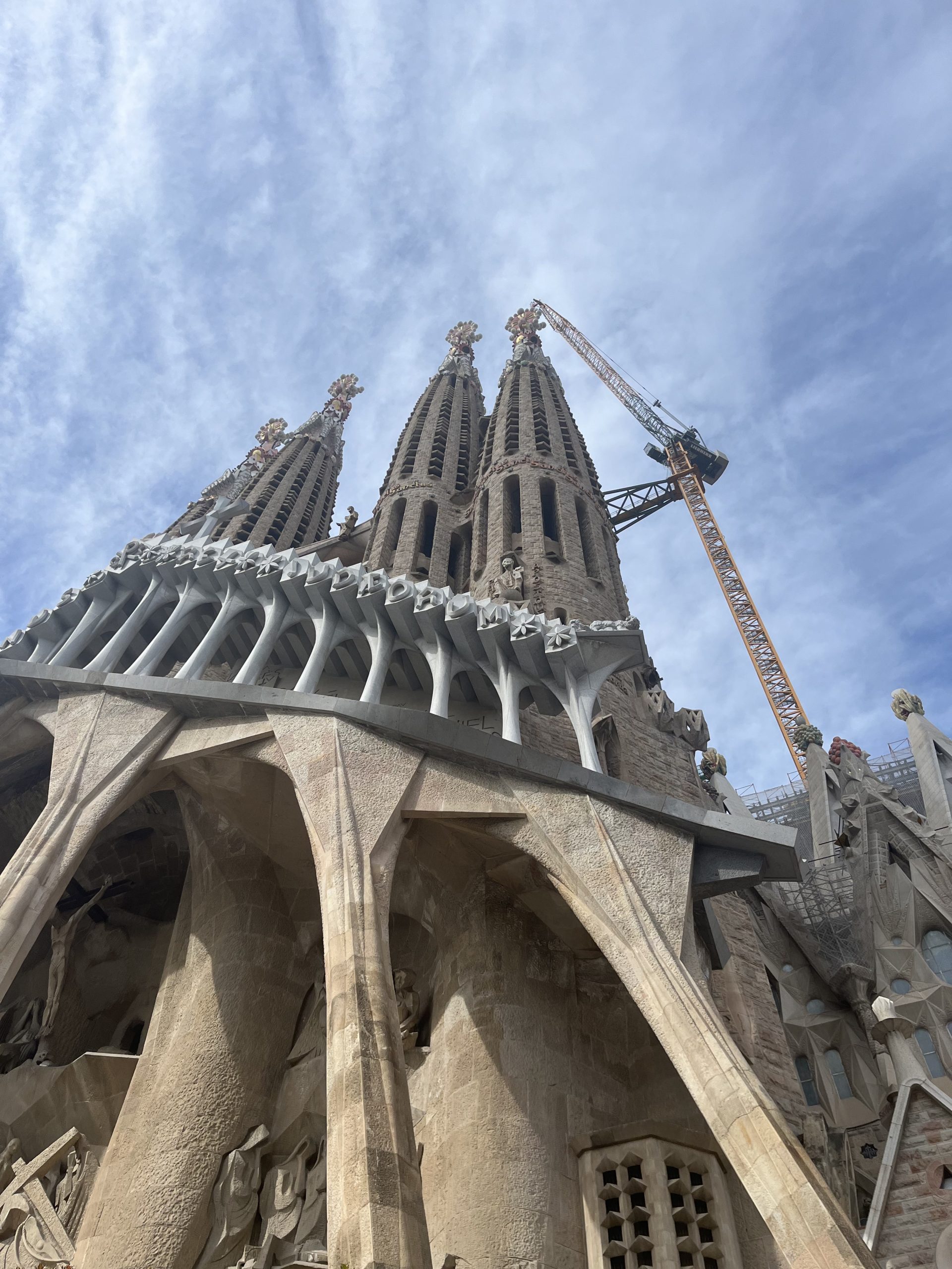 It was designed by Antoni Gaudi who died by getting run over by a streetcar, before it waas completed. Of course, it has yet to be completed. Work was started about 100 years ago and may be completed some day, but who knows.