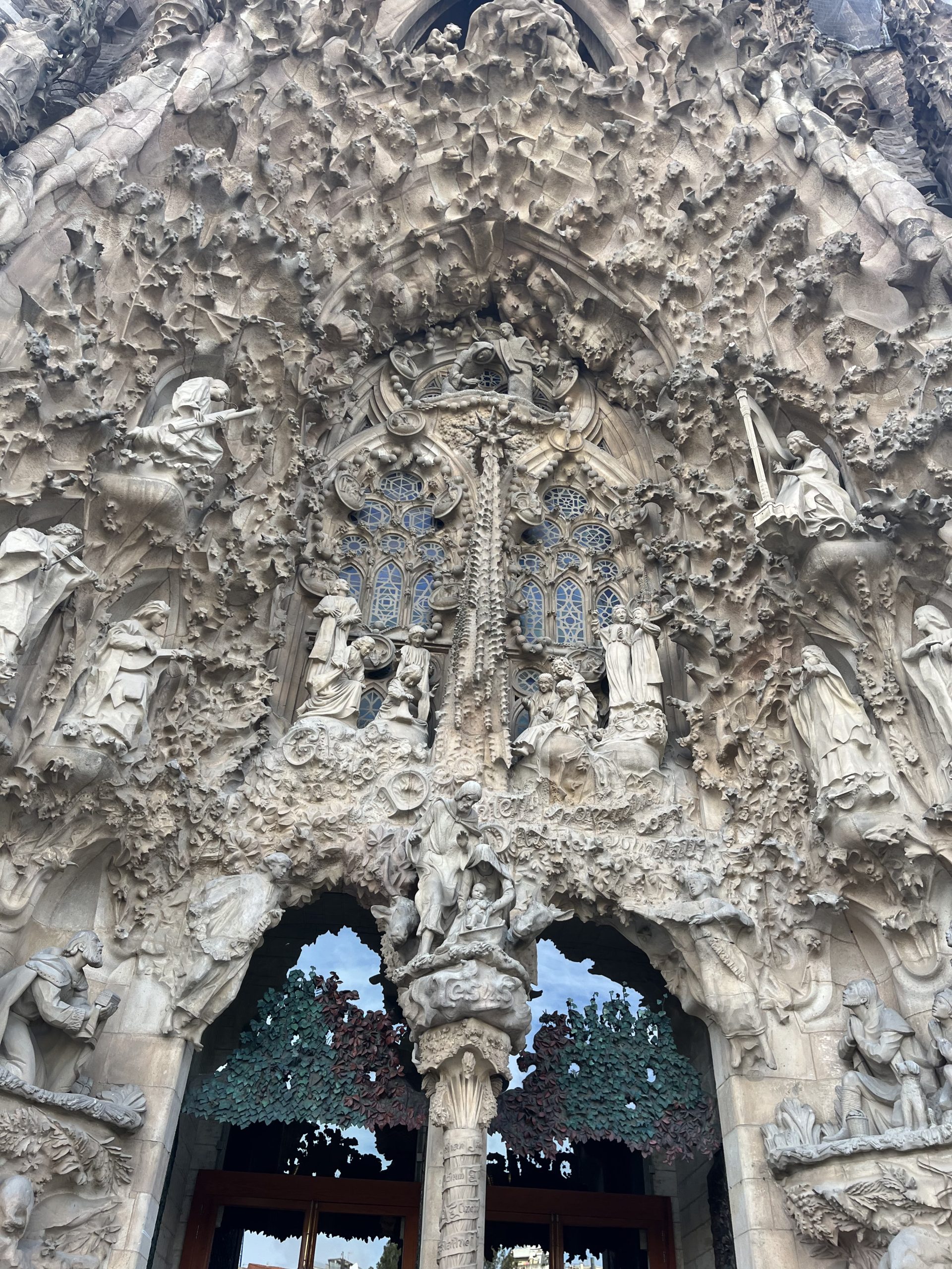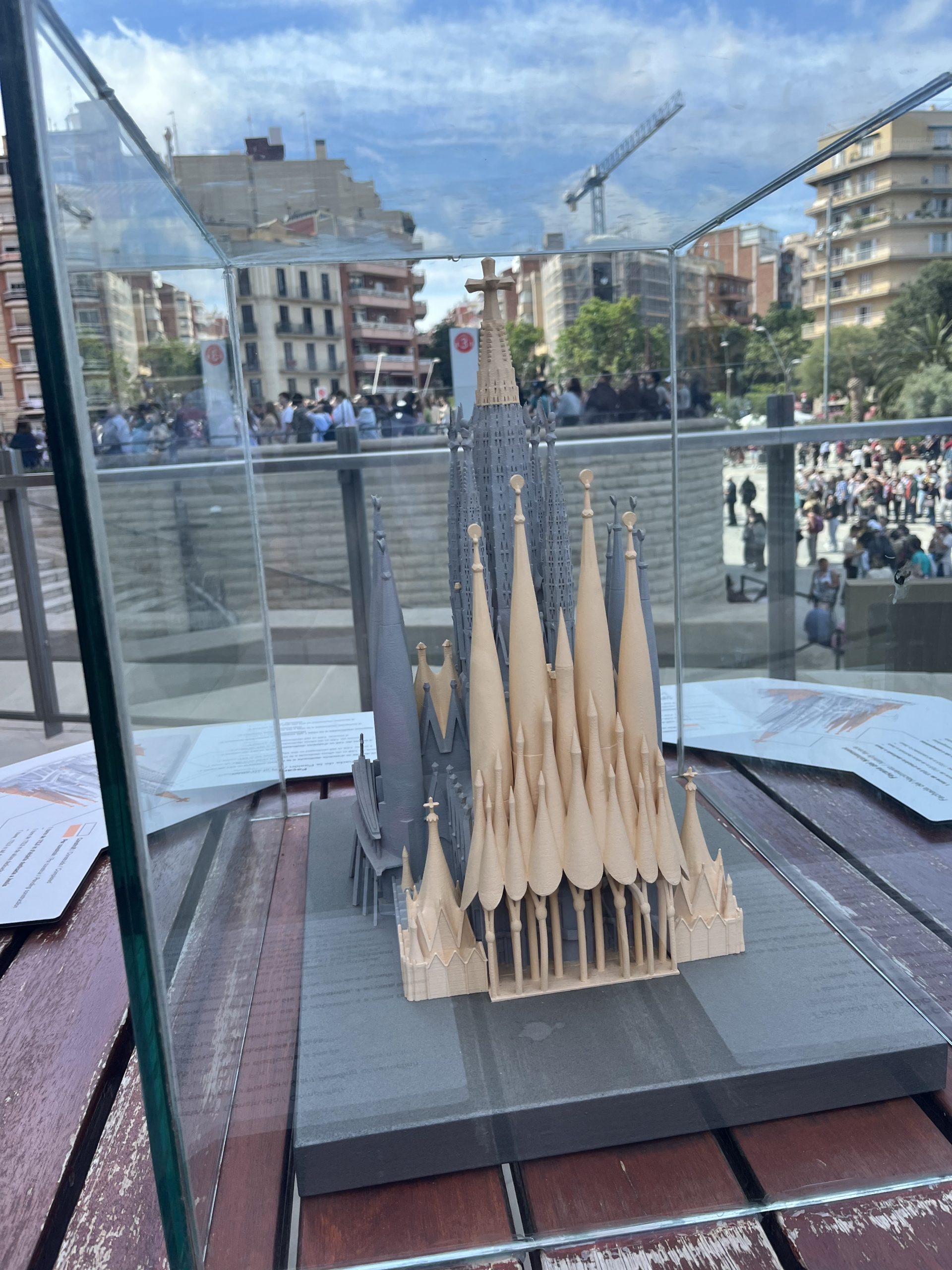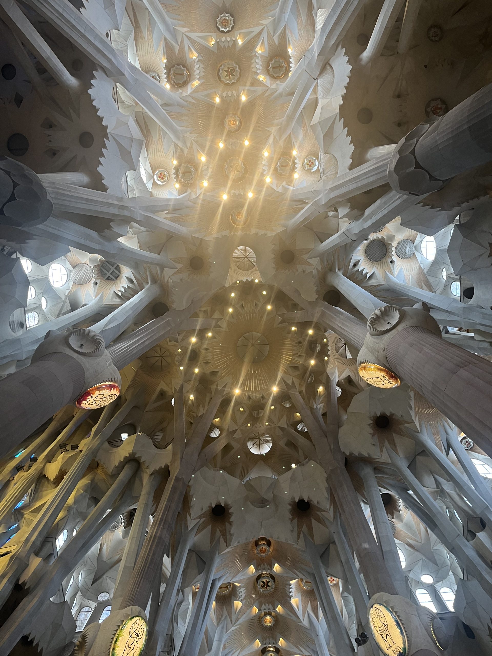 It was designed by Antoni Gaudi who died by getting run over by a streetcar, before it waas completed. Of course, it has yet to be completed. Work was started about 100 years ago and may be completed some day, but who knows.