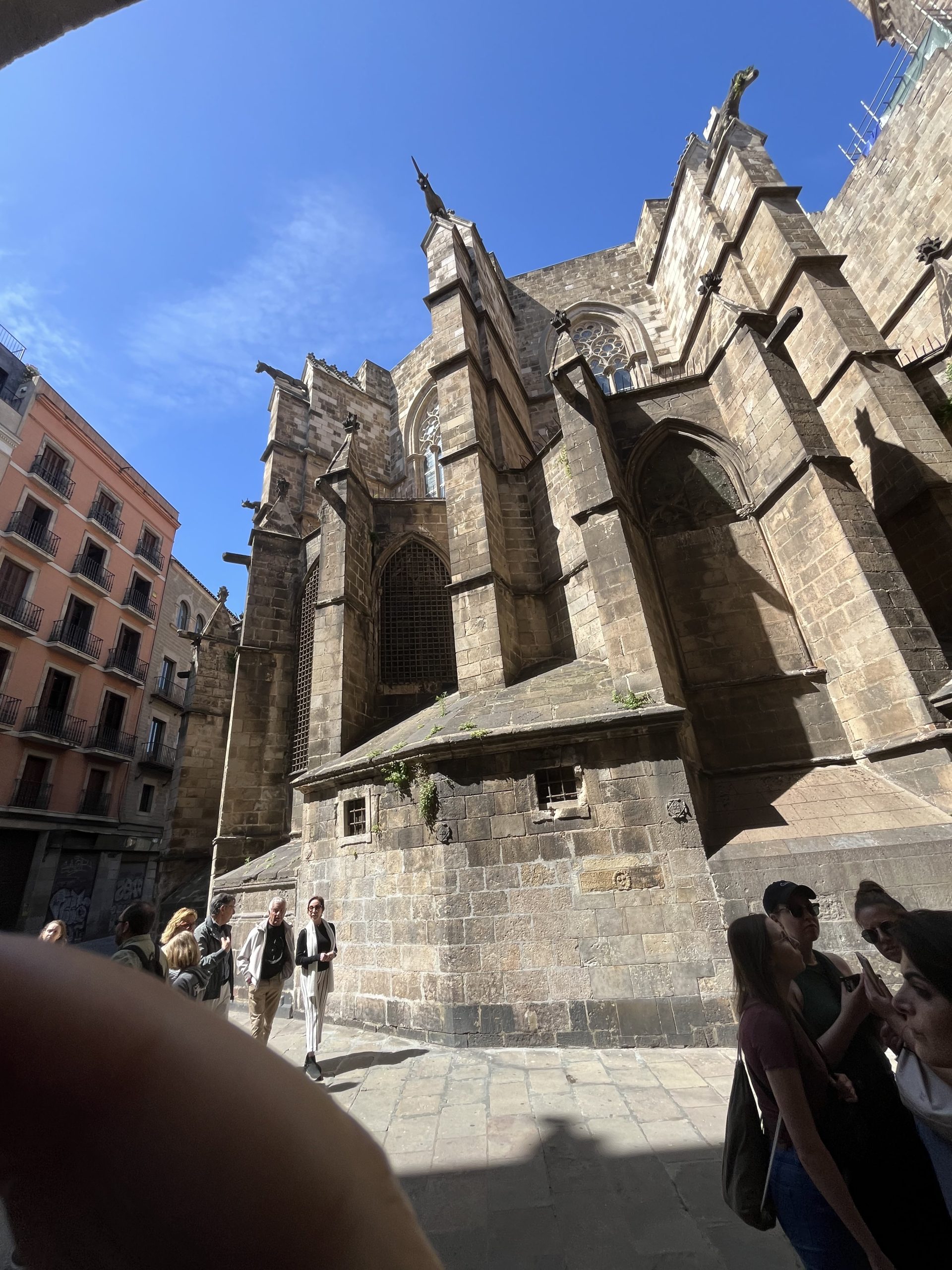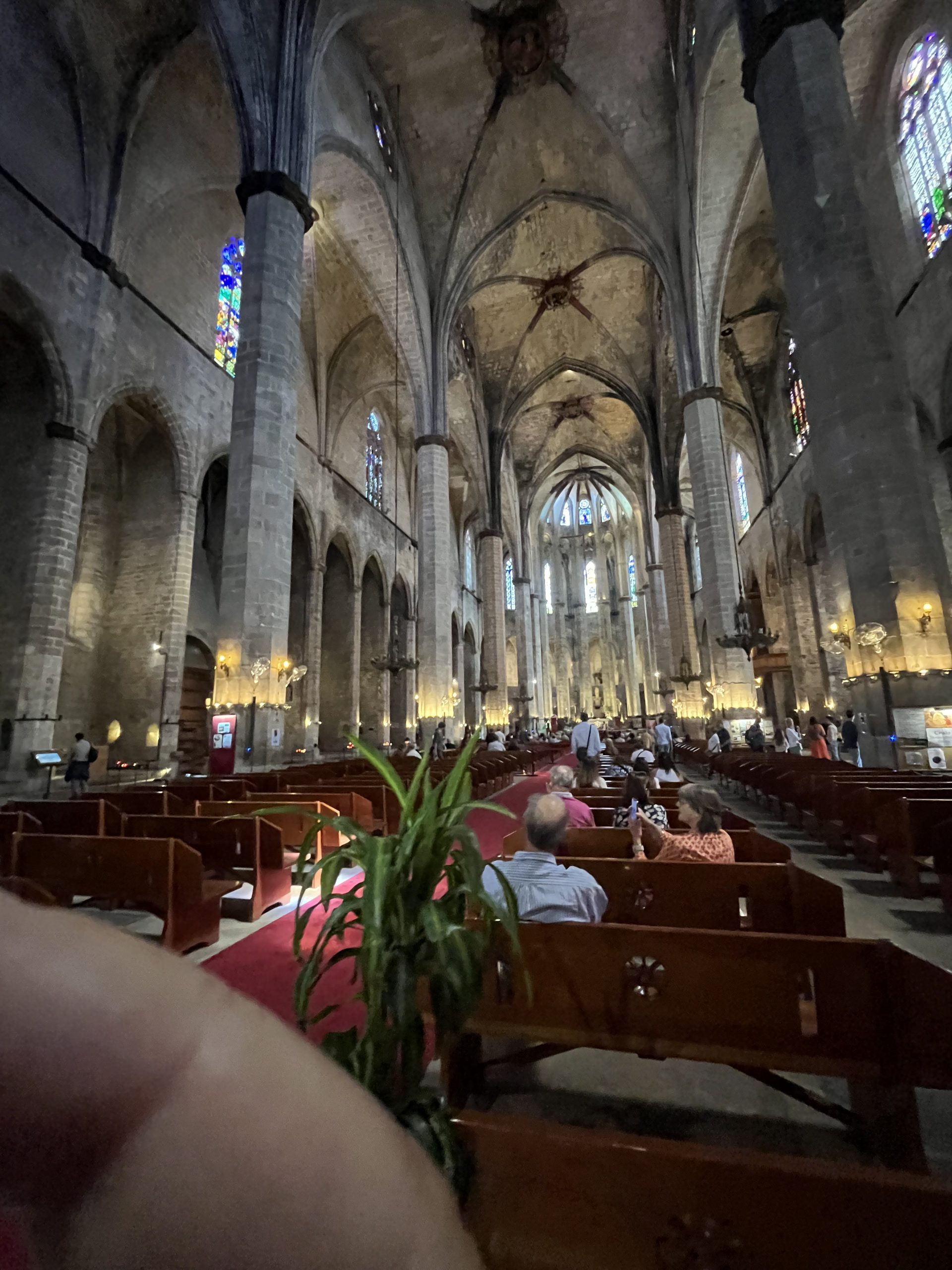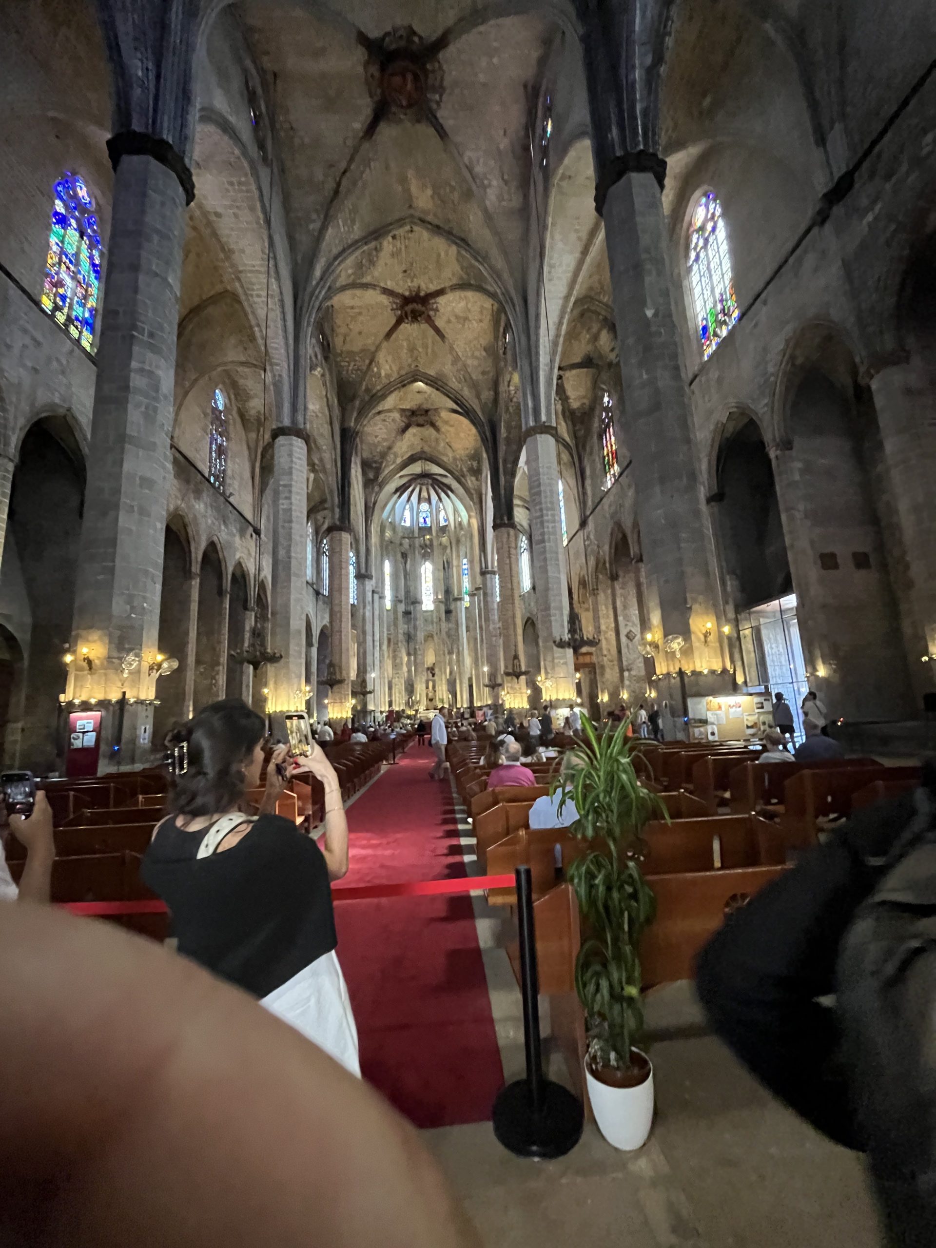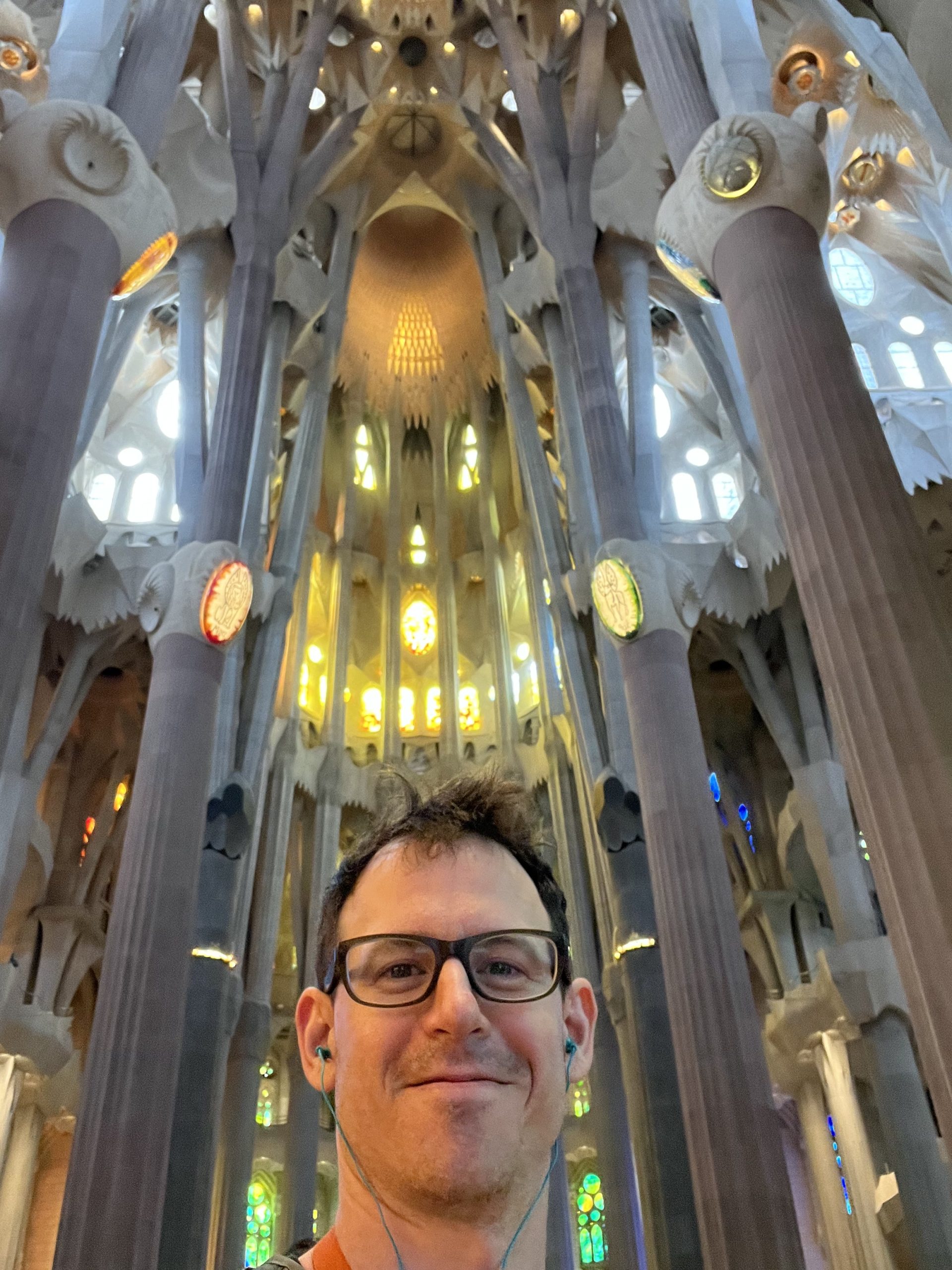It was designed by Antoni Gaudi who died by getting run over by a streetcar, before it waas completed. Of course, it has yet to be completed. Work was started about 100 years ago and may be completed some day, but who knows.