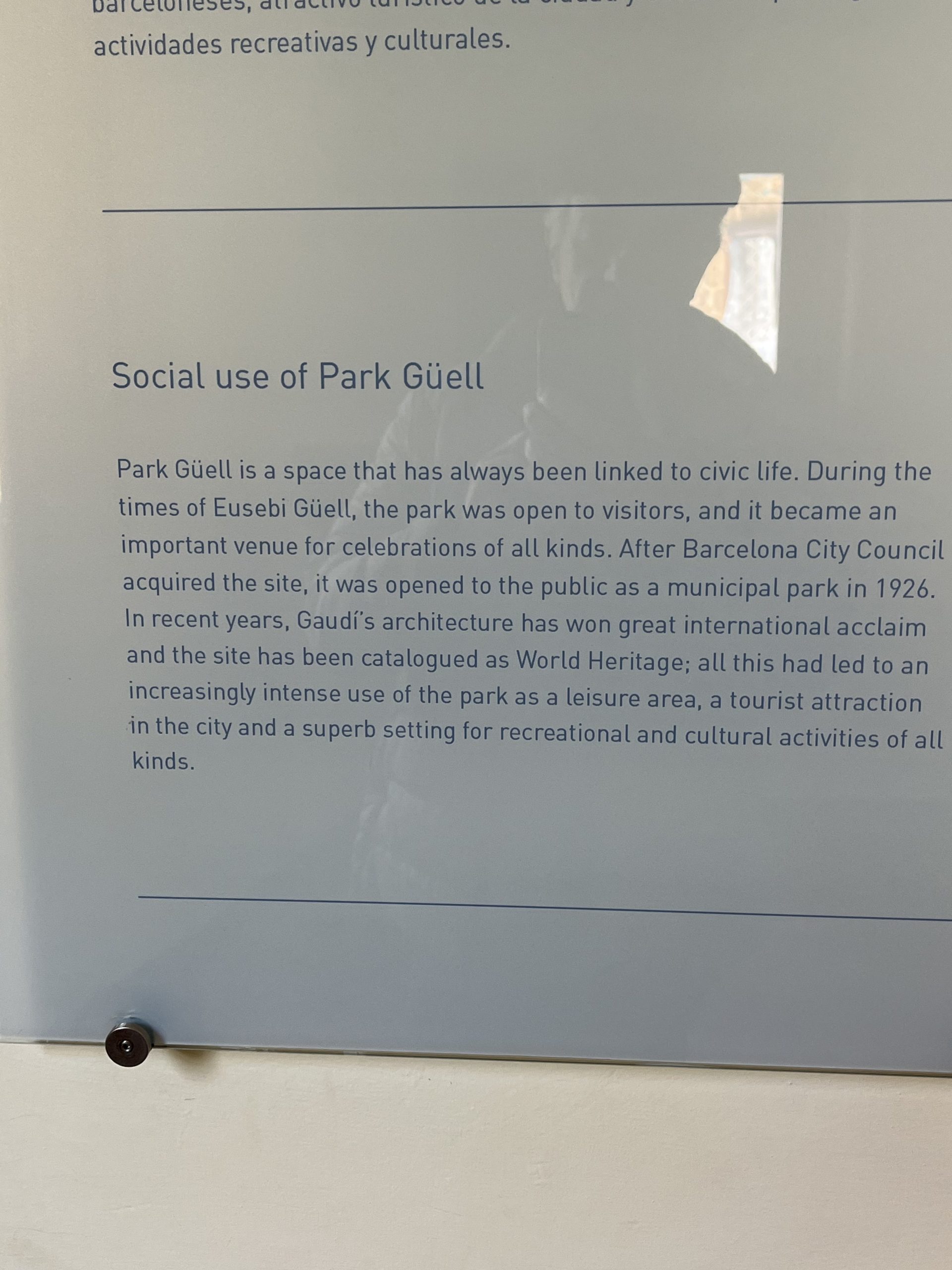 Park Güell is a privatized park system composed of gardens and architectural elements located on Turó del Carmel, in Barcelona, Catalonia, Spain. Turó del Carmel belongs to the mountain range of Collserola – the Parc del Carmel is located on the northern face.